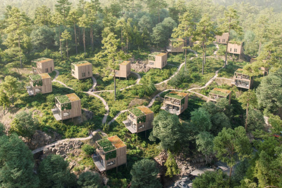 Along the coast of Norway, Spacegroup has envisioned the Movikheien Cabins. The complex consists of 16 wooden retreats nestled throughout a rugged forest. To minimize disruption to the existing terrain, the sustainable structures are situated on a stilted base and rather than roads, each one is accessed by a network […]