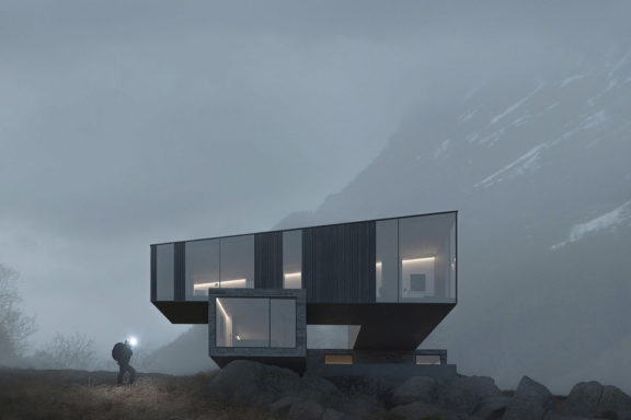 Designed by Studio Puisto and visualized by CYLIND, the Kambanes House is a remote retreat in the Iceland countryside. The dwelling balances the rugged landscape with a pair of sleek, L-shaped forms. Its lower level is clad in a stone-like brick while the upper story sports a wooden slat facade. […]