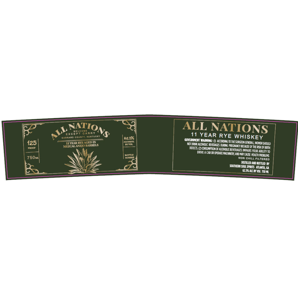 All Nations 11 Year Old Rye is aged in mezcal Anejo barrels before being bottled at 125 proof | 62.5 ABV.