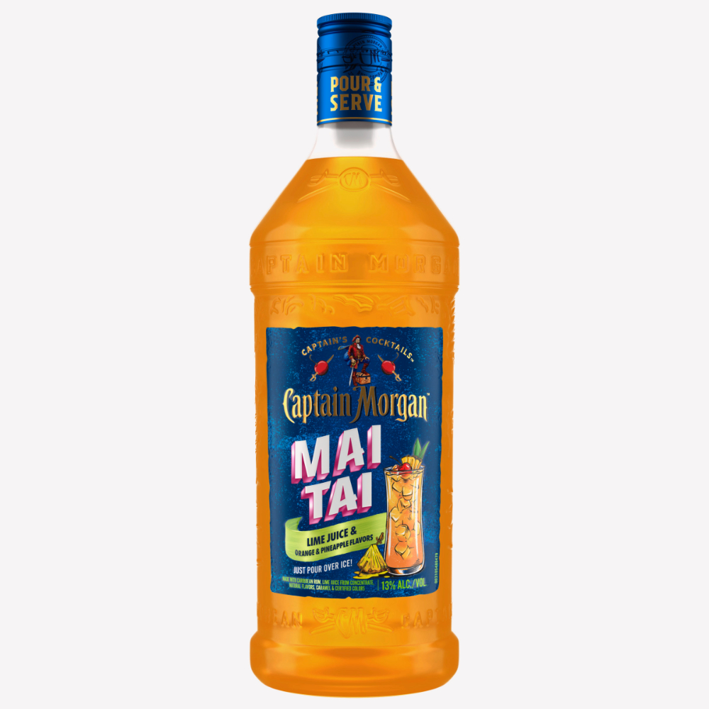 Mix it up with Captain Morgan Mai Tai. Our blend combines lime juice, orange, and pineapple flavors to create this flavorful take on a classic cocktail. Easy to enjoy and ready-to-drink, this blend can be sipped on its own. Simply pour over ice for incredibly delicious drinks to enjoy with your crew! Includes one 1.75 L bottle of Captain Morgan Mai Tai. Drink responsibly, Captain’s Orders!