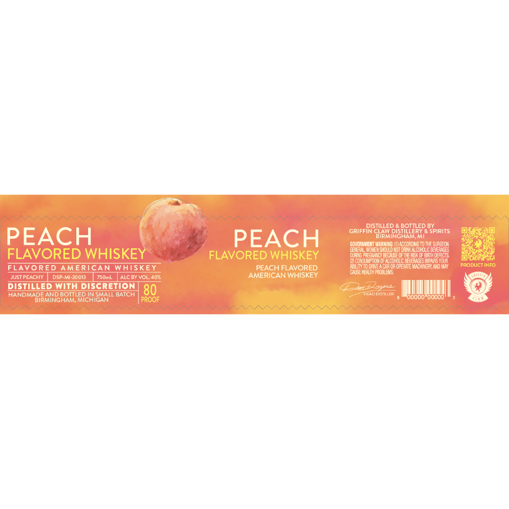 Griffin Claw Distillery Peach Flavored American Whiskey is handmade and bottled in small batches. Distilled and bottled by Griffin Claw Distillery & Spirits.
