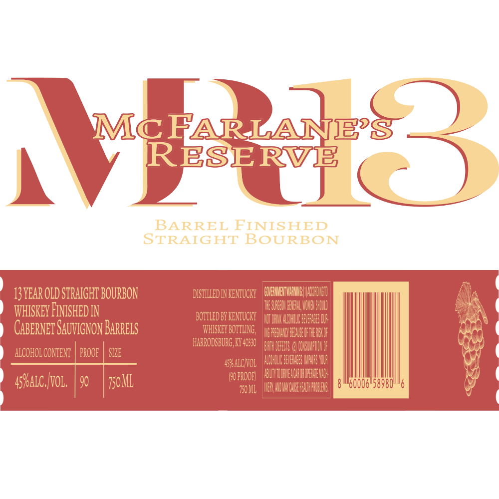 McFarlane’s Reserve 13 Straight Bourbon Whiskey is aged 12 years and finished in hand-selected Cabernet Sauvignon barrels, the perfect toast to the rebellious spirit.