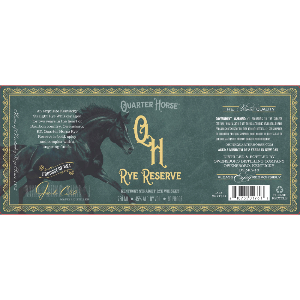 An exquisite Kentucky Straight Rye Whiskey aged for two years in the heart of Bourbon Country, Owensboro, KY. Quarter Horse Rye Reserve is bold, spicy, and complex with a lingering finish.