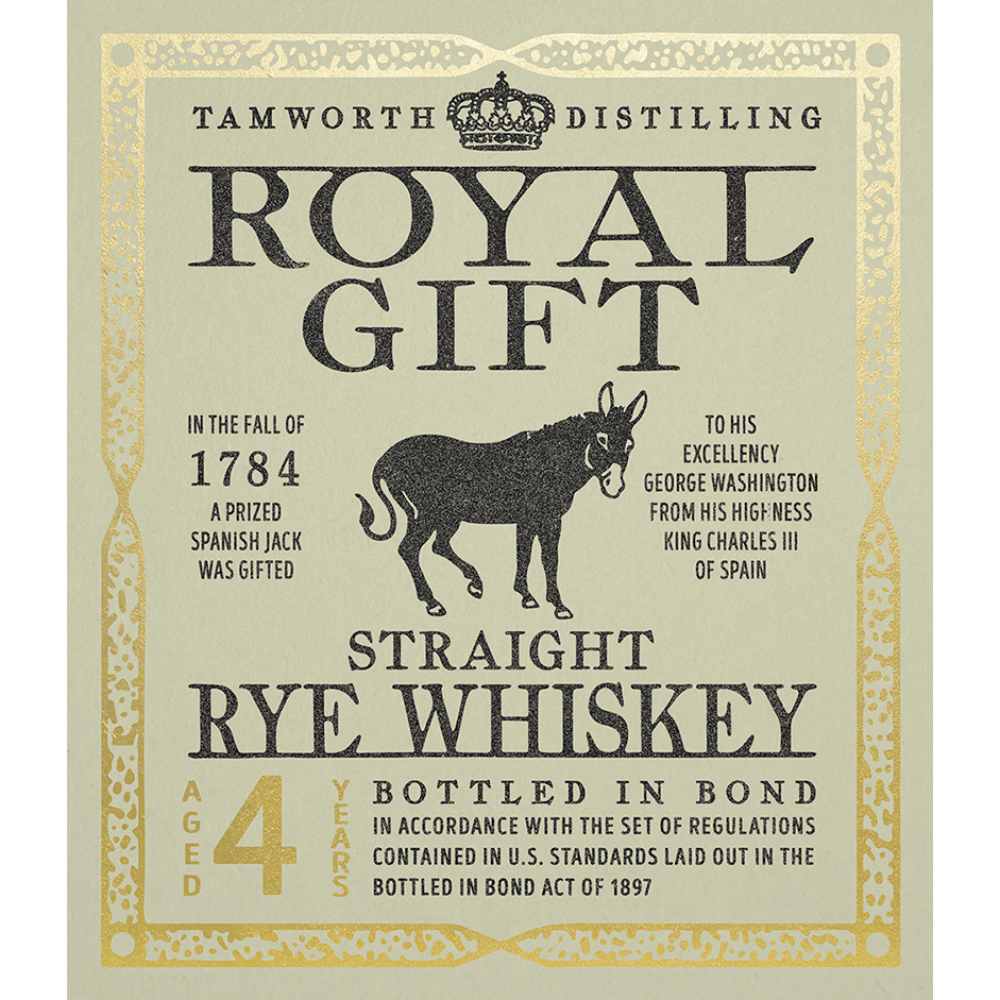 Royal Gift from Tamworth Distilling is a straight rye whiskey aged 4 years and bottled-in-bond in accordance with the set of regulations contained in U.S. standards laid out in the Bottled In Bond act. Bottled at 100 Proof.