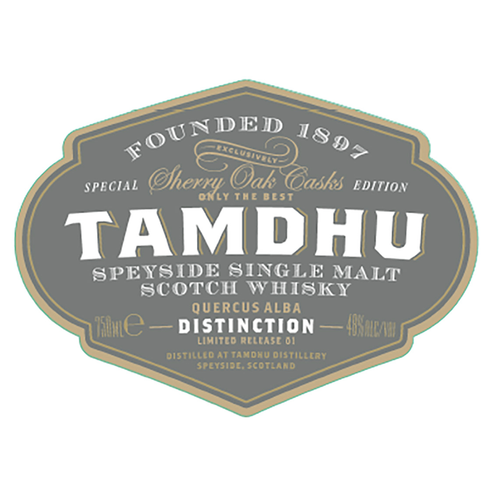 Tamdhu Quercus Alba Distinction is a Celebration of the very best in American oak, delivering warming cinnamon and vanilla notes, with sharp citrus, dates, and chocolate. Bottle at 48% ALV/VOL
