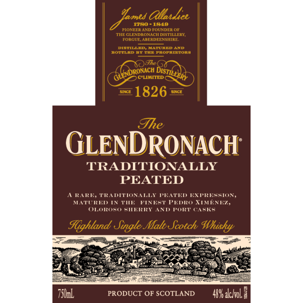 The GlenDronach Traditionally Peated is a rare Highland Single Malt Scotch Whisky traditionally peated expression matured in the finest Pedro Ximenez Oloroso Sherry and Port Casks