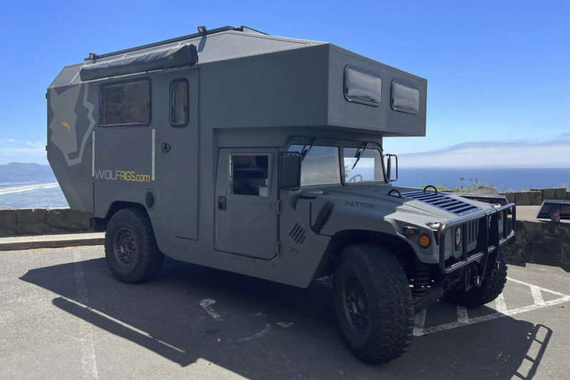 The original Hummer H1’s military origins makes it a great platform for the an overlander. Wolf Rigs, based in Colorado, has coverted the H1 into the Patton, a go-anywhere camper with a living area that is anything but military-style spartan. The Patton fits a queen-size bed, a fully-equipped kitchenette, and spacious lounge area into an angular cab-over package that suits the H1 perfectly. The kitchenette features a two-burner stove, sink, and slide-out fridge, with the shower located at the back with a patented hideaway toilet. The exterior rear doors open to reveal a large storage compartment, packed with a jack, jerry cans, spare wheel and tire, and an extendable ladder. Wolf Rigs treats every build as a custom job, with nearly anything the buyer could ask for on offer.